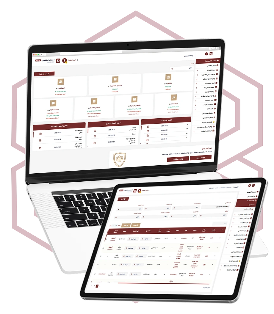 نظام متكامل، تطبيق موبايل مبتكر، ومنصة تسويقية مخصصة. كل ما تحتاجه لتحقيق أقصى استفادة من عملك القانوني.
